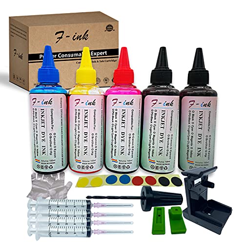 Up To 50% OFF F-ink 5 Bottles Ink and Ink Refill Kits Compatible with Hp Inkjet Ink Cartridges 67XL 65XL 667XL 21XL 22XL 27XL 28XL 21 22 56 57 58 -Ink Tools for Reuse The Cartridge